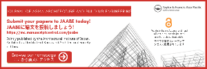 | ------------------------------------------------------------------ ◎ Journal of Asian Architecture and Building Engineering(JAABE)論文募集 JAABEは、IF: 1.3 (2022)のScience Citation Index Expanded採録誌です。 ![]() |